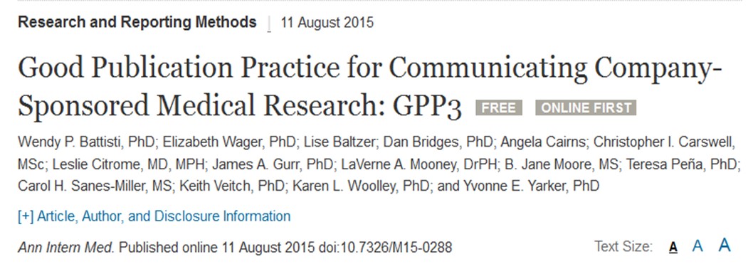 Good Publication Practice 3 (GPP3), a key guidance document for the publication of company-sponsored medical research, has been published online today by the Annals of Internal Medicine.