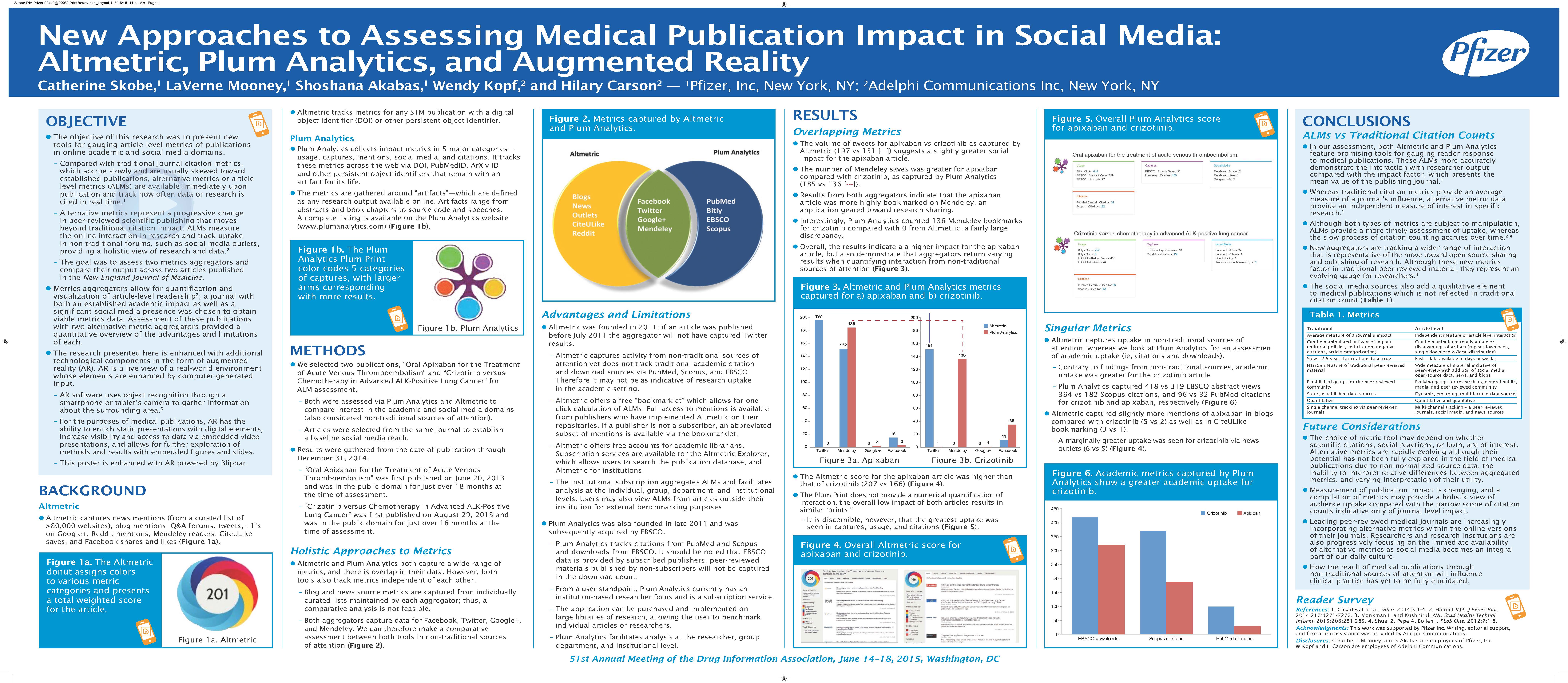New approaches to assessing medical publication impact in social media: Altmetric, Plum Analytics, and Augmented Reality